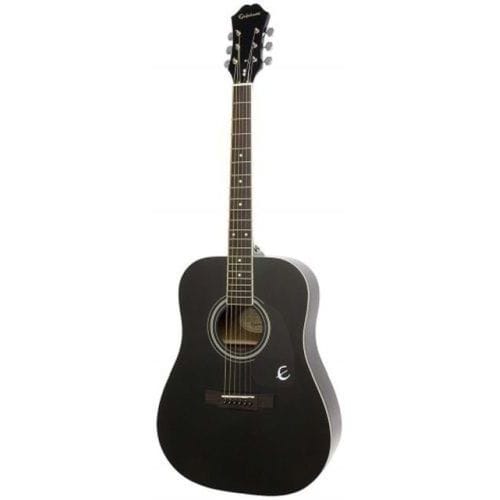 Epiphone FT-100 Acoustic Guitar Ebony has a selected spruce top and mahogany body with a mahogany set neck. Fingerboard is rosewood with dot inlays